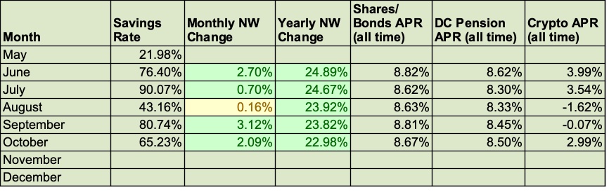 Back in the world of my personal budget, all media noise has been ignored and things continue as normal. More money invested in the market no matter the situation and a chunky savings rate. In summary, a good month with the portfolio at an all-time high. My proxy for assessing equity performance (VWRL) has climbed higher over the last couple of months and has again broached all time highs before retreating slightly. At time of writing it’s at 105.96p. More funds were deployed into the market keeping the cash position under control. A reliable and reasonably cost effective method has now been established to get funds into the market so a regular drum beat of investment should now continue.